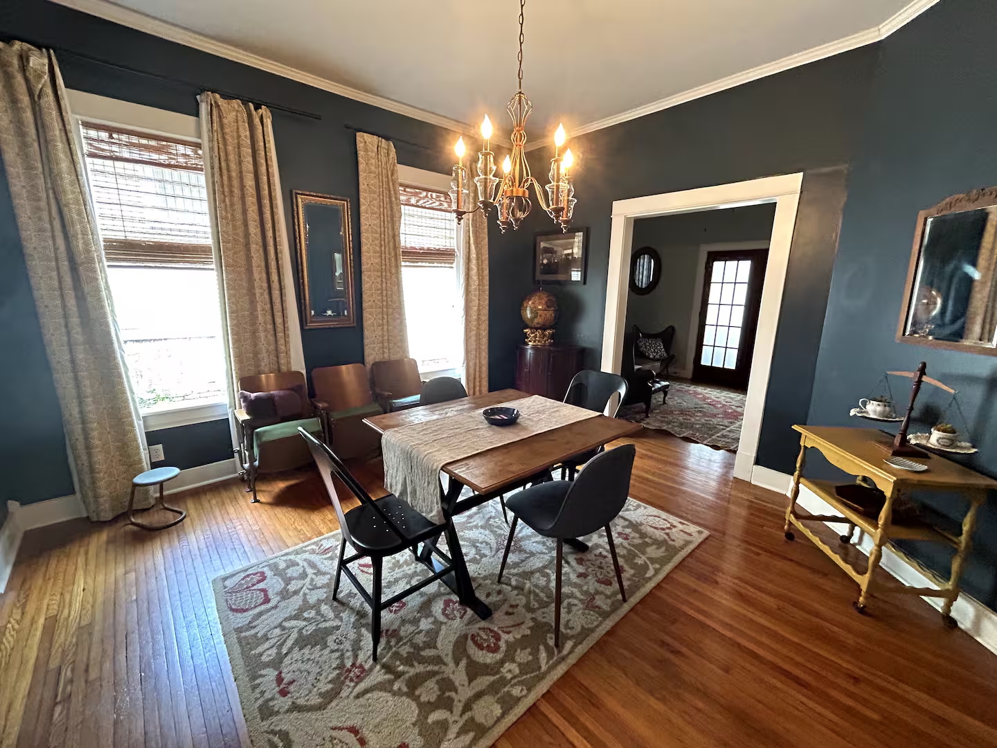 3 Bedrooms • 3 Bathrooms 3 Baths • Sleeps 3-6Welcome to Kalmia House, a charming 3BR/3BA retreat in Laurel’s Historic District—just a short walk to downtown and featured Home Town sights. Ideal for couples, families, or girl’s trips, this stylishly restored home blends vintage charm with modern luxury. Enjoy ensuite baths in every bedroom, a chef’s kitchen, cozy screened porch, and designer details throughout—all pet- and family-friendly!