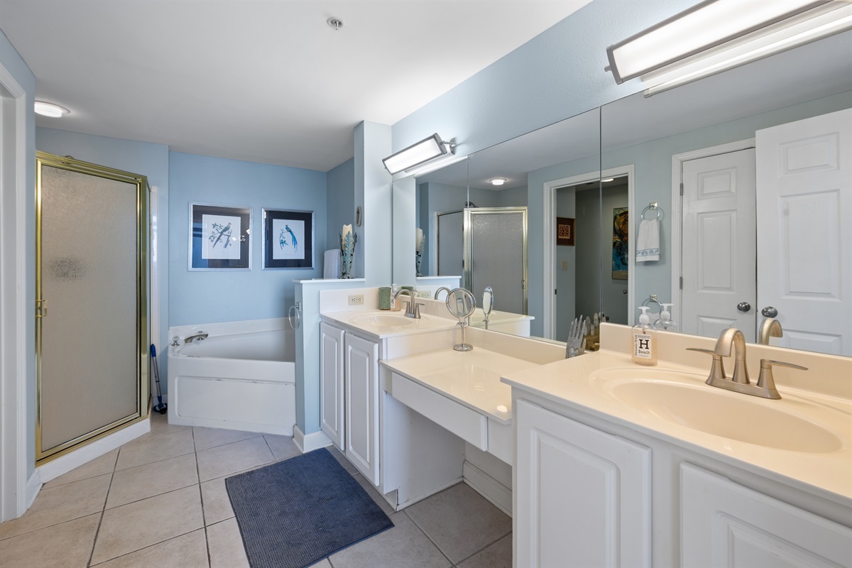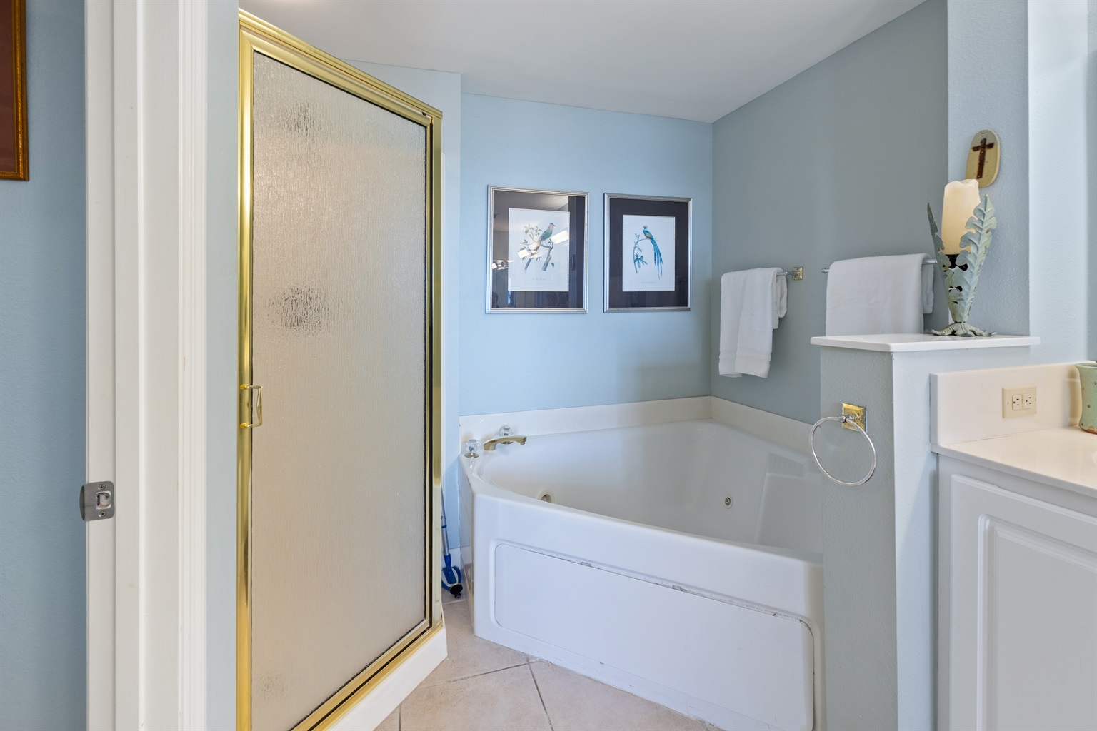 SPA-LIKE PRIMARY SUITE: Jacuzzi tub + walk-in shower.