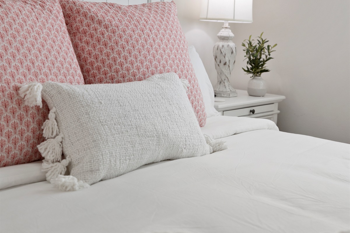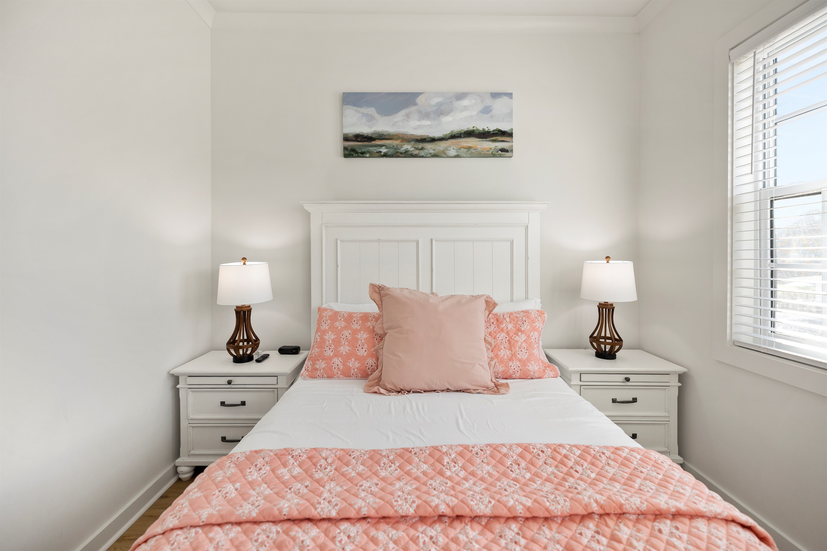 Perfect for couples or older children, this beautifully appointed bedroom includes a queen-sized bed, cozy bedding, and tasteful coastal décor. Located just steps from the shared full bathroom, it’s a comfortable and relaxing space for rest after a day of beach fun.