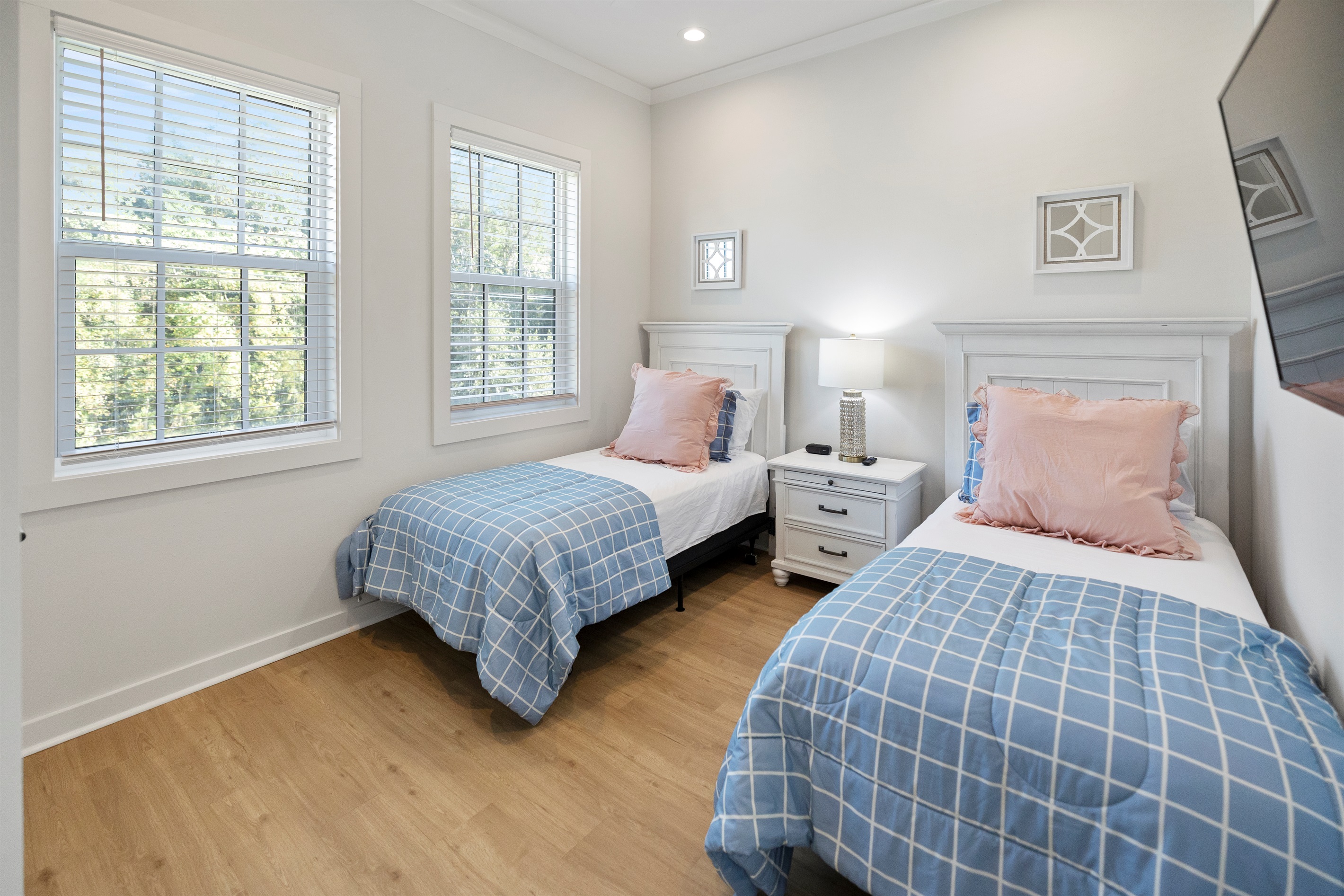 Designed with younger guests in mind, this room features two twin beds with fun, colorful bedding. It’s the ideal spot for kids to recharge after exploring the Gulf Coast. Located near the second full bathroom, this room ensures everyone has plenty of space to get ready for the day.